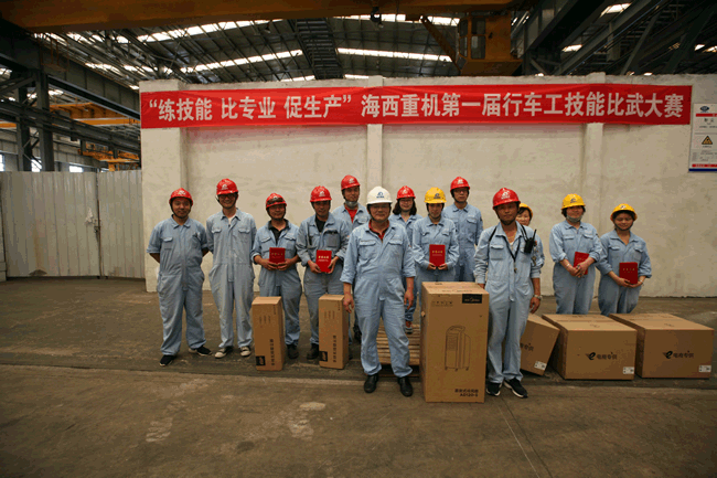 6月24日早上8點(diǎn),隨著行車一聲鳴笛,以“練技能、比專業(yè)、促生產(chǎn)”為主題的第一屆行車工技能比武大賽在下料車間正式開始,來自全公司范圍內(nèi)的46名行車工進(jìn)行了激烈地同臺競技,經(jīng)過長達(dá)5個小時的角逐,最終6名選手勝出,分獲冠軍、亞軍和季軍。公司副總經(jīng)理、工會主席代振華現(xiàn)場對獲獎?wù)弑硎咀YR并為優(yōu)勝者頒發(fā)了獲獎證書與獎品。