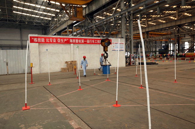 起重吊裝作業(yè)在公司諸多生產(chǎn)工藝環(huán)節(jié)當(dāng)中,是使用頻率較高、危險性較高的作業(yè)工序,安全、平穩(wěn)、準(zhǔn)確、快速地吊裝作業(yè)是高效生產(chǎn)的關(guān)鍵因素。行車占公司起重吊裝設(shè)備超過70%,因此行車工為我司的重點(diǎn)生產(chǎn)崗位之一,其技能水平的高低,在很大程度上影響著產(chǎn)品的生產(chǎn)節(jié)奏,甚至對公司整體上的生產(chǎn)節(jié)拍都會產(chǎn)生重大影響。公司一貫主張“不僅要有好的裝備,還要把裝備維護(hù)、保養(yǎng)好,更要把設(shè)備功用足用好”,在此背景下,為檢驗(yàn)公司行車工的技能實(shí)力,提高行車工崗位意識和技能水平,促進(jìn)行車工自主學(xué)習(xí)、苦練技能,進(jìn)一步提升公司安全、高效的生產(chǎn)能力,由公司黨委主辦,工會承辦的行車工技能比武大賽應(yīng)運(yùn)而生。