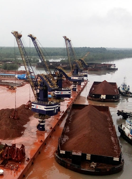 目前,韋立聯(lián)盟港口公司(WAP)滿負荷運營,“海西重機”牌固定式起重機質(zhì)量可靠、裝船速度快,成功助力博凱內(nèi)港打破了港區(qū)泊位每個潮水位只能裝1條駁船的生產(chǎn)瓶頸,多次創(chuàng)造港區(qū)駁船轉(zhuǎn)運新紀(jì)錄,為港區(qū)出礦量打下堅實基礎(chǔ),大大提高了港區(qū)運營能力。未來隨著該批固定式起重機的投產(chǎn),屆時14臺海西重機設(shè)備將為博凱內(nèi)港實現(xiàn)年3000萬噸裝卸目標(biāo)提供有力保證。