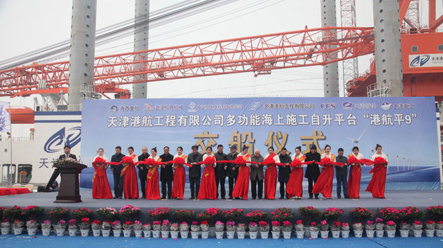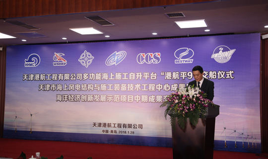 1月28日上午,目前國(guó)內(nèi)起重量最大的風(fēng)電施工平臺(tái)——“港航平9”交付儀式在青島海西重機(jī)舉行,天津海洋局、天津港集團(tuán)、中交機(jī)電局、風(fēng)電協(xié)會(huì)、武漢船機(jī)海西重機(jī)等相關(guān)單位共同見證了這一歷史性時(shí)刻。