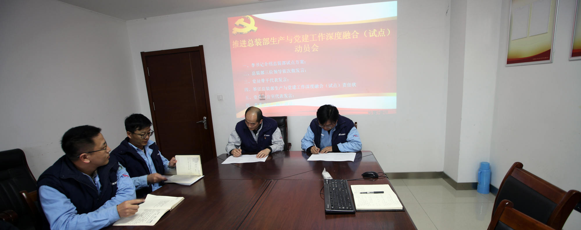 會上,項目管理黨支部書記、總裝部部長李維剛對總裝部試點方案做了重點介紹,總裝部三位部門領導以及黨員骨干代表分別作表態(tài)發(fā)言,朱聲凱與李維剛現(xiàn)場簽訂責任書。