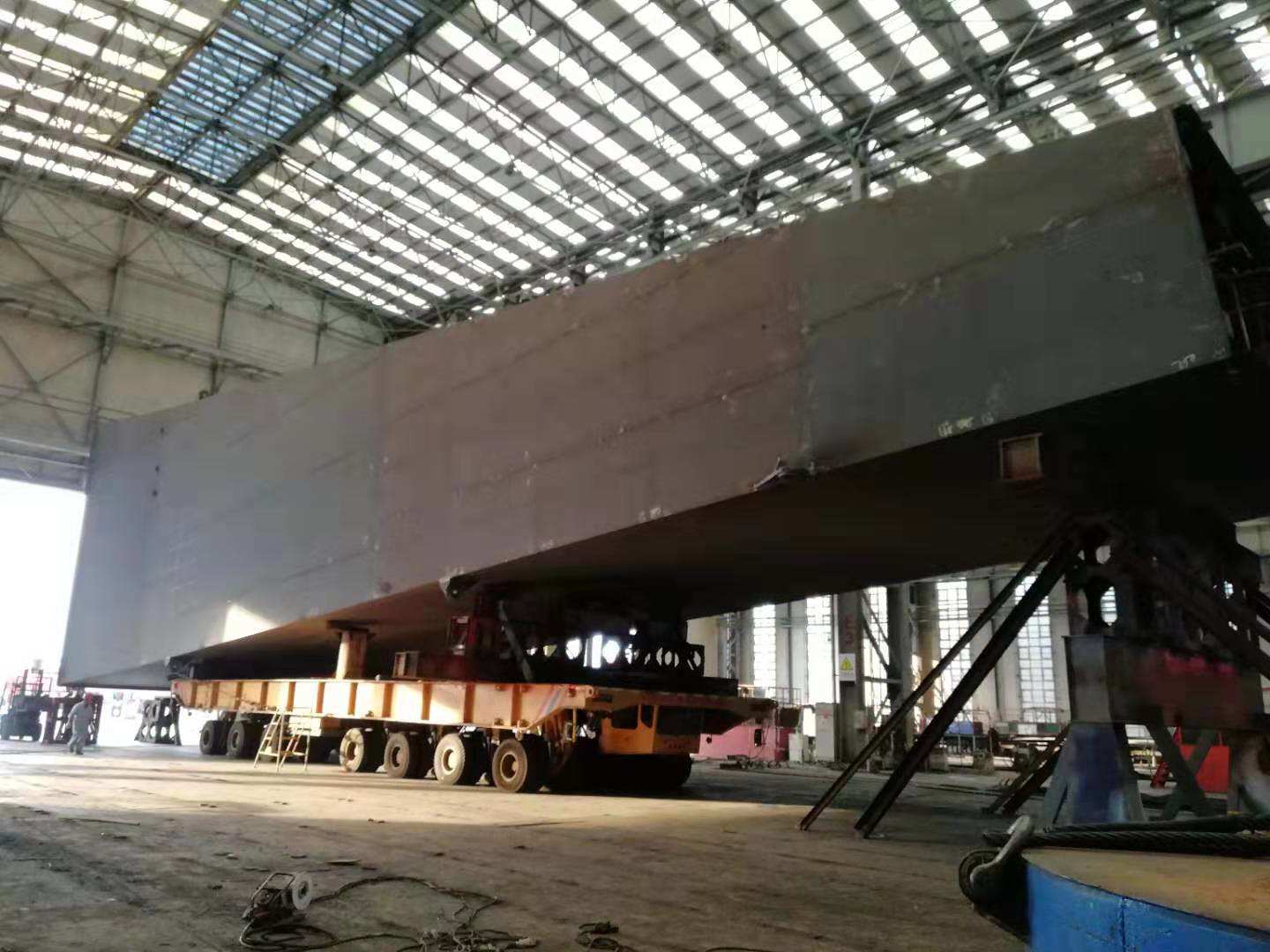 8月23日晚上19:30分,運載M30剛性腿整體分段的380T平板車,在操控人員的審慎操控下,緩緩駛出海西重機鋼構制作車間大門,成功轉運出車間!這一幕看似平淡無奇的場景,凝結了多少員工的汗水和智慧,后面又有多少創(chuàng)新,唯有親身經歷了這場“戰(zhàn)斗”的人才能真正體會。