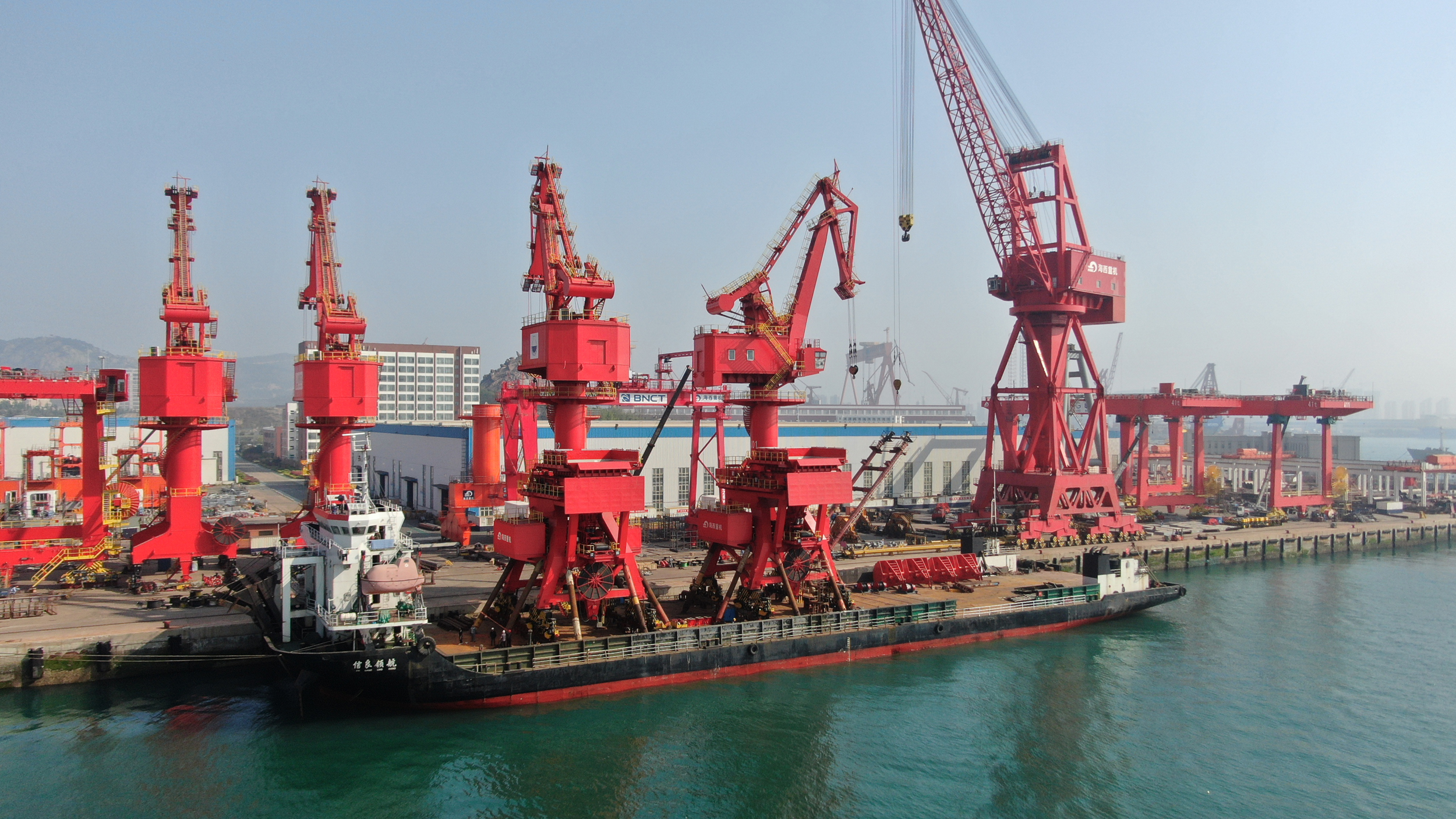 5月1日晚間,海西重機(jī)為中化泉州石化有限公司建造的2臺(tái)25T-25M帶斗門(mén)機(jī)順利發(fā)運(yùn)。
