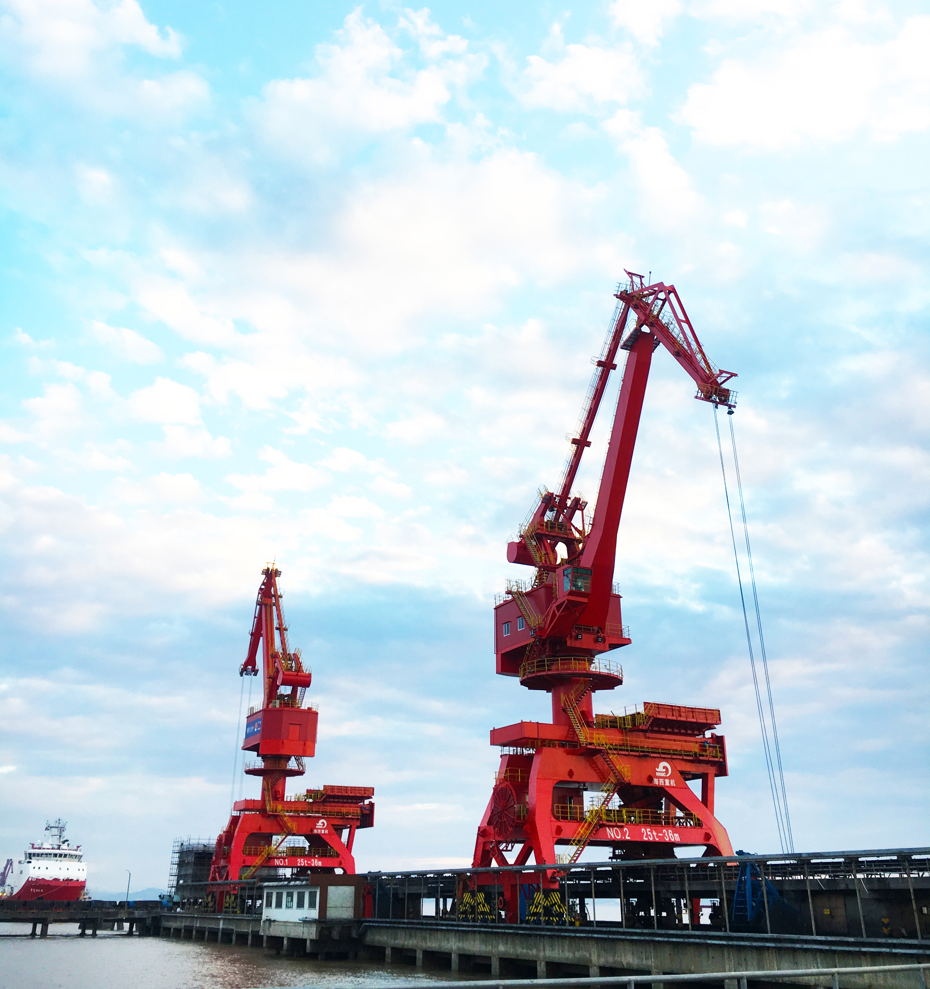 5月12日,武漢船機(jī)海西重機(jī)為寧波舟山港老塘山碼頭打造的2臺(tái)25T-36M帶斗門(mén)機(jī)順利交付。