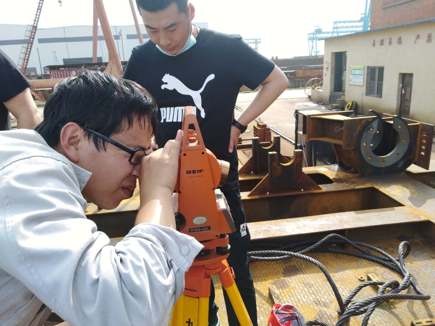 “我先后前往紅光碼頭總裝現(xiàn)場以及九橋鋼結構制作現(xiàn)場,幾乎每天都有雨,現(xiàn)場施工壓力大,經(jīng)常要冒雨趕工,在雨中工作已經(jīng)成為常態(tài),哪怕渾身濕透也要繼續(xù)。通過與施工隊溝通,在師傅牟壽堂的指導下,清點現(xiàn)場物資,不斷解決現(xiàn)場技術問題,加深了對整機結構和裝配的理解?,F(xiàn)場碼頭吊裝需要使用浮吊,浮吊方案的編制十分復雜,不僅僅要考慮吊高、幅度與載重,還要考慮水位、吊裝角度、臂架干涉等一系列的問題,為了把參數(shù)計算準確,經(jīng)常加班加點,還好努力就有收獲,現(xiàn)在對吊裝作業(yè)的理解更深了。”劉镕旗在感嘆自己的成長,感恩于他的付出,畢竟無論是小青年還是老青年,這片藍天是靠大家共同撐起的。