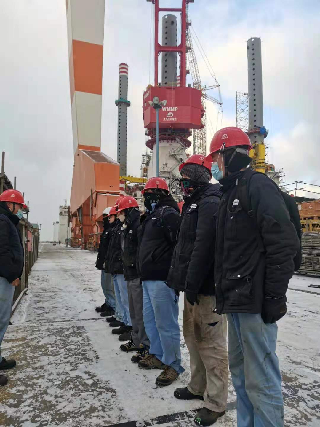 1月7日,山東經(jīng)歷了一次罕見的寒潮,煙臺下起了雪,這是第二場雪,也是我們要克服的又一個惡劣天氣,寒風(fēng)里摻雜著雪,氣溫也是零下好幾度。一如既往的早班會,特意強調(diào)一下安全,然后根據(jù)現(xiàn)場情況,交代好工作,我們就整裝上陣,開始一天工作?,F(xiàn)場的問題在一個一個解決,堅定了我們的信心。我常常鼓勵大家,“咱們再辛苦辛苦,早日結(jié)束?!标犛褌円矔唵位匾痪渑牡脑挘斑@都不是事,我們都想早點干完?!?/span>