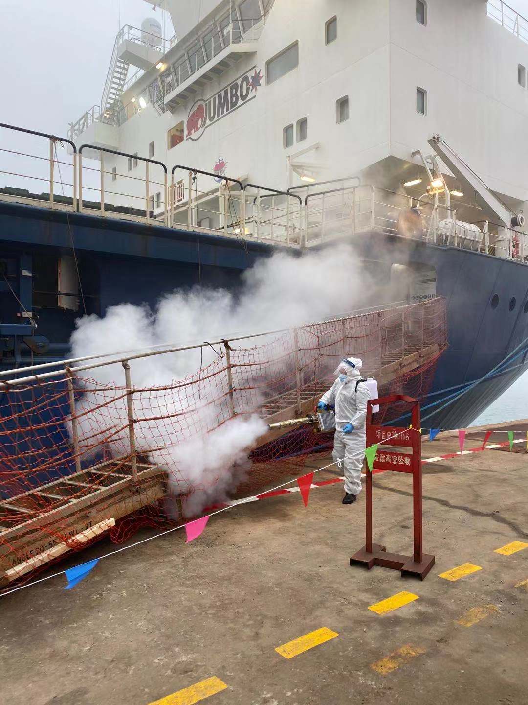靠泊船舶日常巡查嚴(yán)管。碼頭靠泊的外籍、外地船舶及隨船人員,全方位船舶消毒,認(rèn)真做好人員排查登記、健康管理告知、居船隔離觀察、生活垃圾處置和信息上報(bào)。