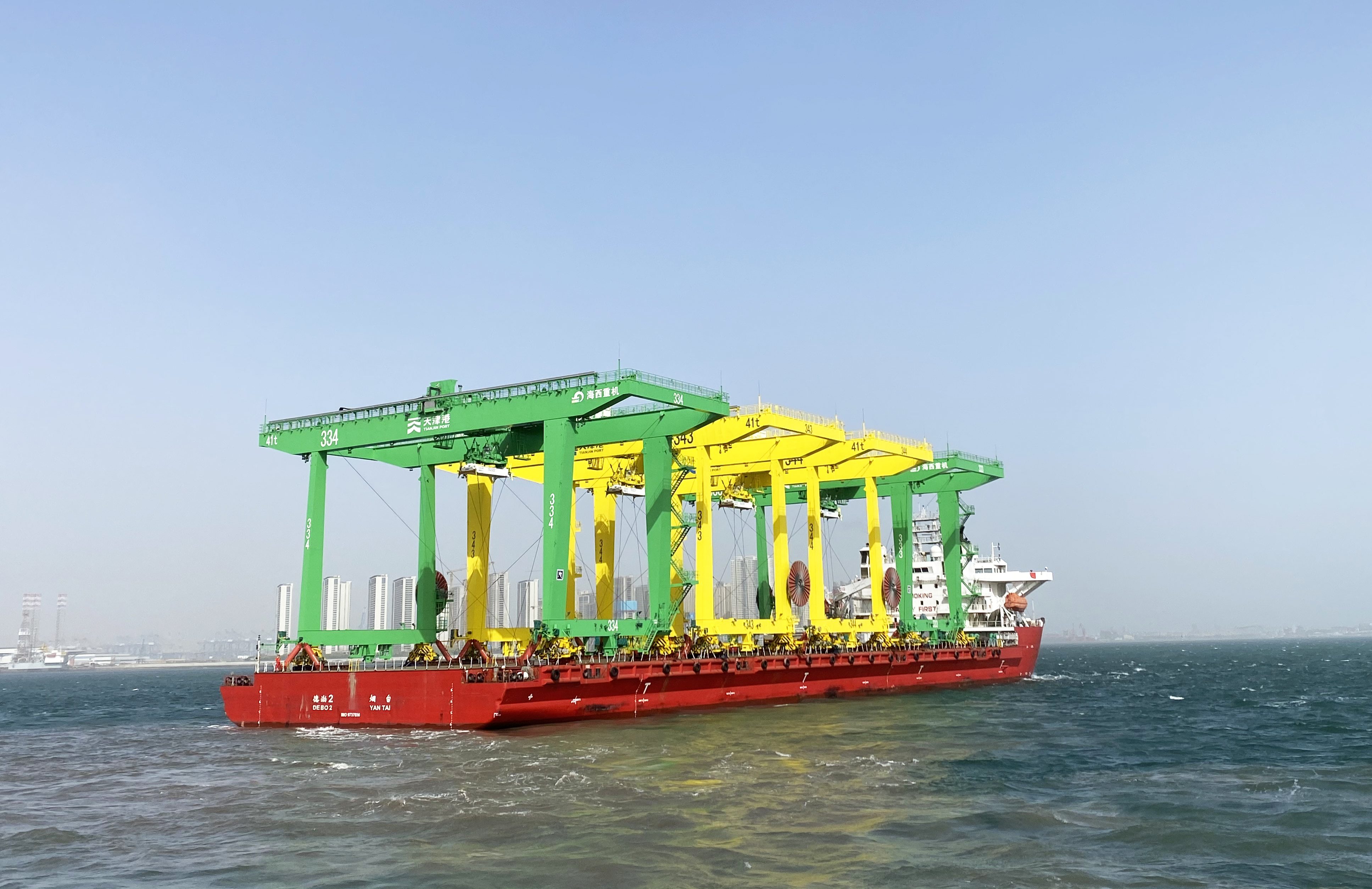 該項目由25臺41t-34m自動化軌道吊組成,于2020年3月份開工,采用紅、橙、黃、綠、深藍、淺藍、紫7種顏色“繪制”,光彩奪目,被親切地稱為“七彩兄弟”,此次發(fā)運的是黃色和綠色自動化軌道吊,前期發(fā)運的16臺設備部分已進入試運行階段,等到25臺軌道吊全部應用于業(yè)主碼頭時,將成為天津港一道靚麗的風景線。