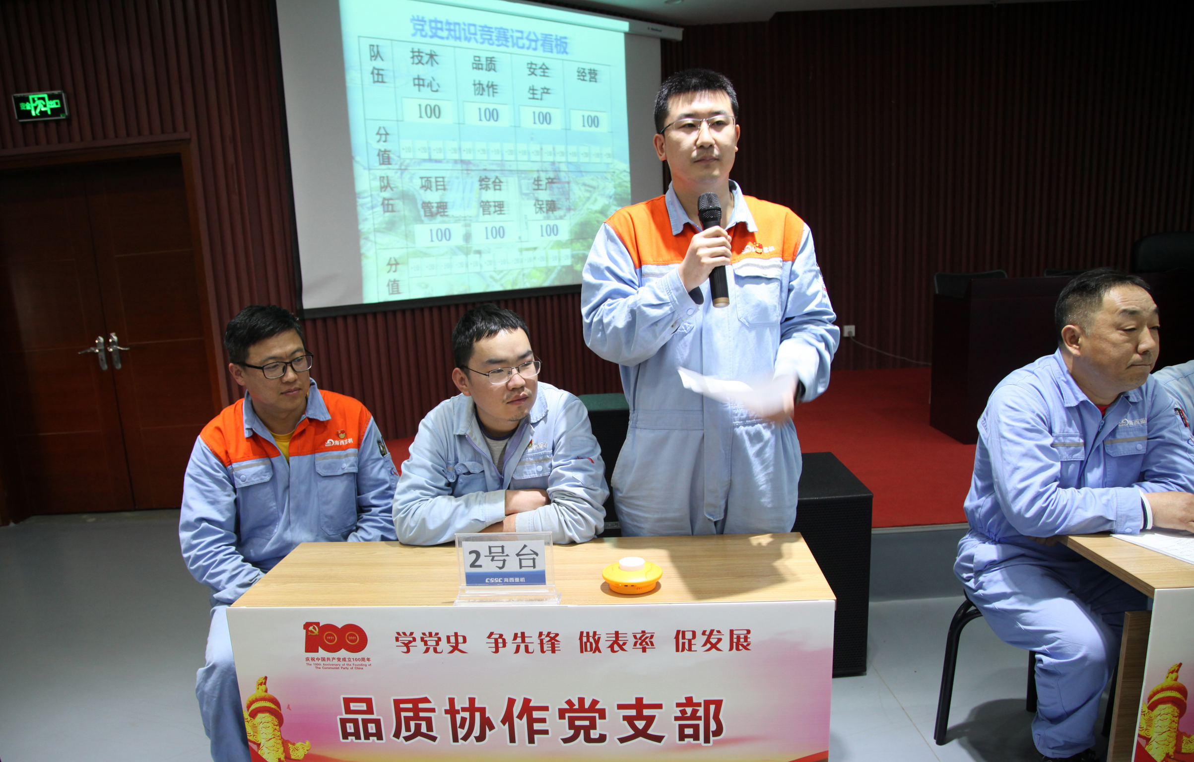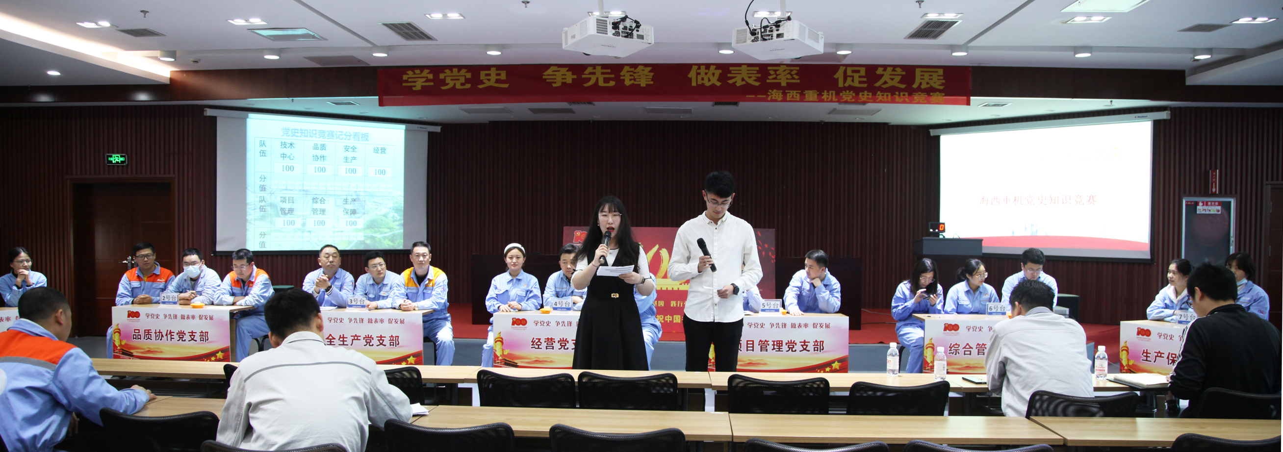 聚力同心齊奮進(jìn),學(xué)史激發(fā)新作為。為慶祝中國(guó)共產(chǎn)黨成立 100 周年,謳歌中華民族實(shí)現(xiàn)偉大復(fù)興的奮斗歷程,繼承革命先烈的優(yōu)良傳統(tǒng),傳承紅色基因,增進(jìn)全體黨員干部對(duì)黨的知識(shí)的了解,5月20日,由中國(guó)船舶集團(tuán)旗下武漢船機(jī)海西重機(jī)黨委主辦,公司團(tuán)委協(xié)辦,以“學(xué)黨史 爭(zhēng)先鋒 做表率 促發(fā)展”為主題的黨史知識(shí)競(jìng)賽火熱舉行,取得圓滿成功。