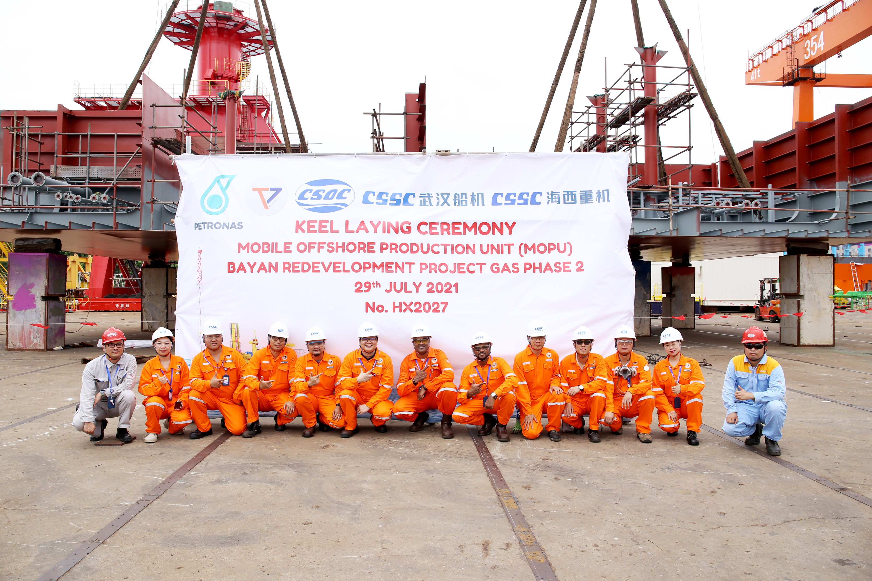 7月29日,馬來(lái)西亞可移動(dòng)自升式生產(chǎn)(天然氣)平臺(tái)(簡(jiǎn)稱(chēng)MOPU)鋪龍骨儀式順利舉行,標(biāo)志著該平臺(tái)正式進(jìn)入船臺(tái)搭載階段。馬來(lái)西亞國(guó)家石油公司、T7 Global公司、ABS、中國(guó)船貿(mào)、中國(guó)船舶集團(tuán)旗下武漢船機(jī)海西重機(jī)各方代表通過(guò)現(xiàn)場(chǎng)會(huì)和遠(yuǎn)程視頻直播的方式參加了該儀式。