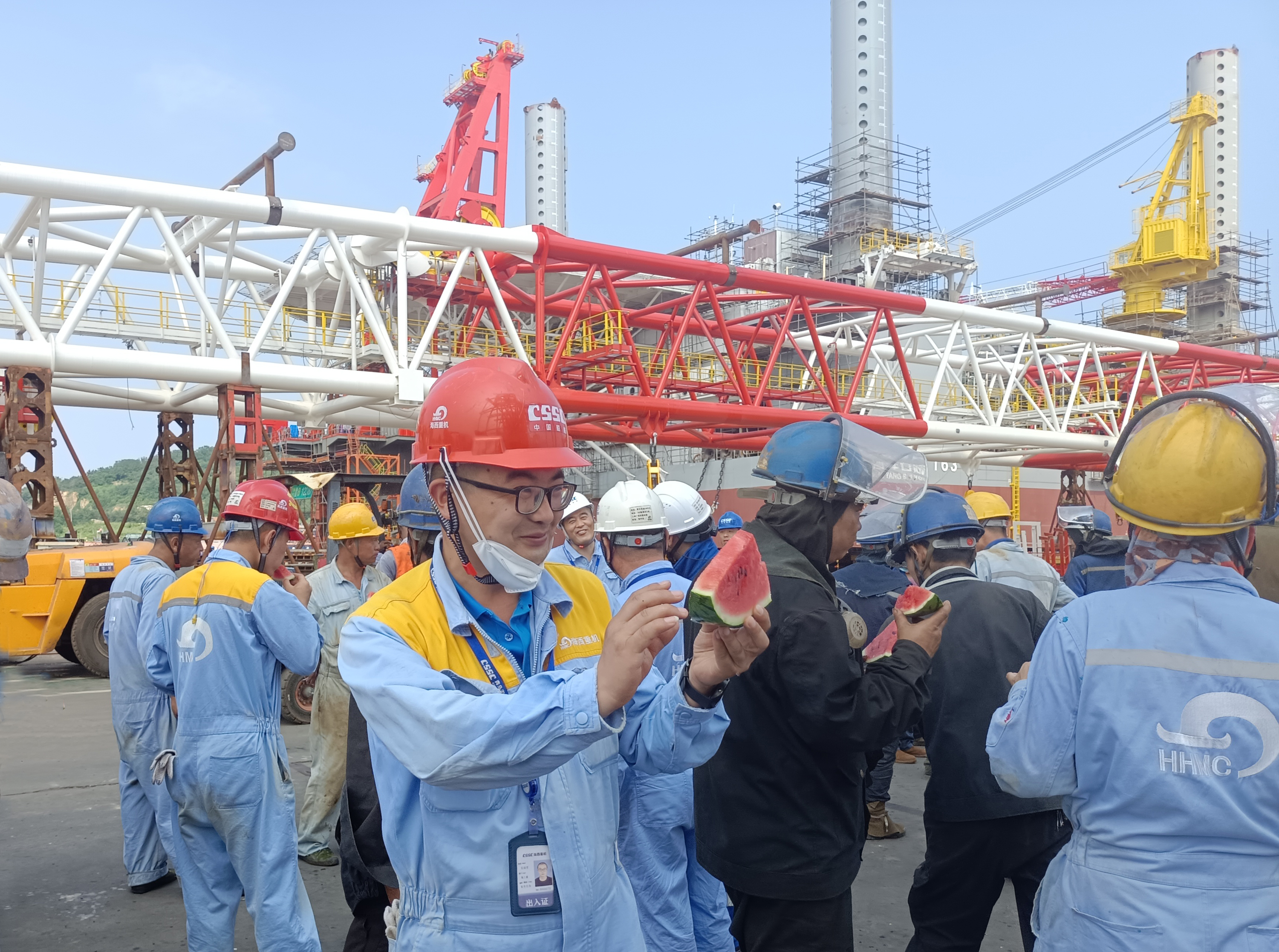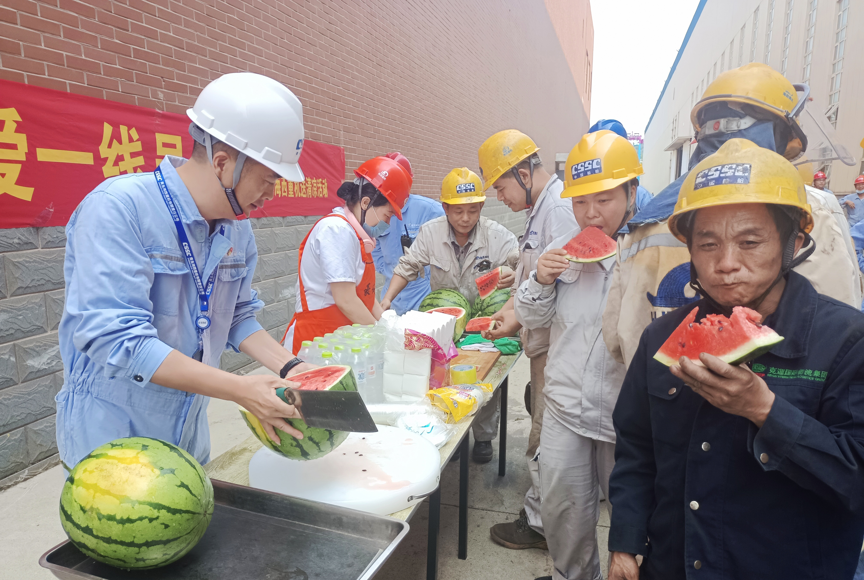 “西瓜真甜,感謝公司的關(guān)愛(ài),我們會(huì)更加努力,戰(zhàn)酷暑、搶節(jié)點(diǎn),更好地保障生產(chǎn)?!变摌?gòu)制造部舾裝工人董學(xué)輝開心地說(shuō)到。