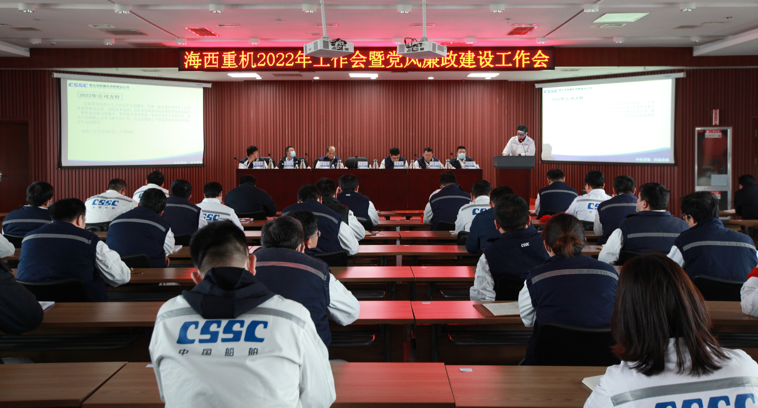 2月12日,中國(guó)船舶集團(tuán)旗下武漢船機(jī)海西重機(jī)公司在901會(huì)議室召開2022年工作會(huì)暨黨風(fēng)廉政建設(shè)工作會(huì),觀看《凝心聚力謀發(fā)展 砥礪奮進(jìn)譜新篇》公司2021年度匯報(bào)片,學(xué)習(xí)傳達(dá)武漢總部2022年工作會(huì)、黨風(fēng)廉政建設(shè)工作會(huì)會(huì)議精神,總結(jié)公司2021年取得的成績(jī),分析經(jīng)濟(jì)形勢(shì),進(jìn)一步明確2022年工作思路,并就各方面重點(diǎn)工作作出部署。