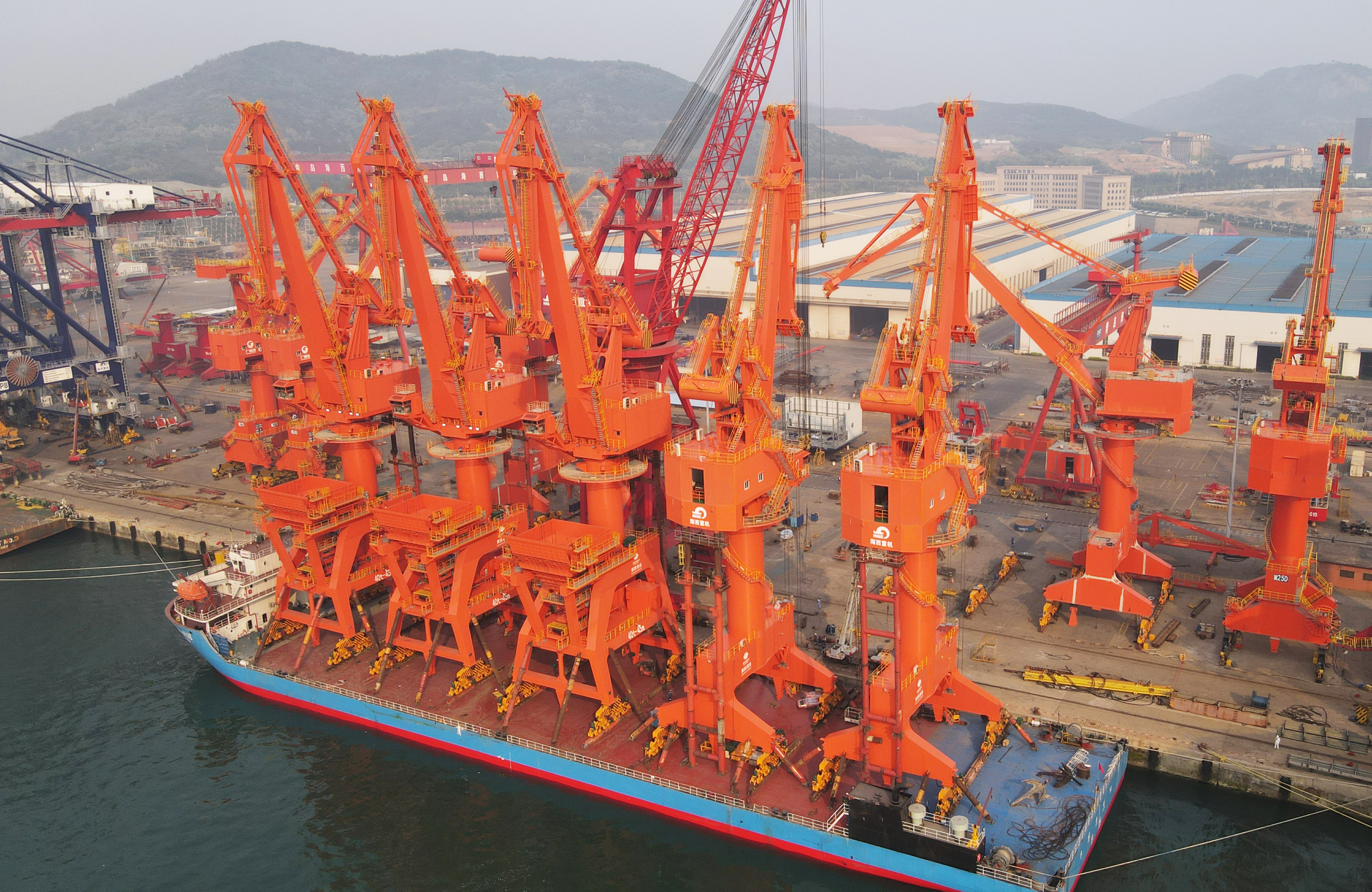 5月21日,中國(guó)船舶集團(tuán)旗下武漢船機(jī)海西重機(jī)公司為中交一航局黃驊港打造的5臺(tái)門機(jī)順利發(fā)運(yùn)。該項(xiàng)目由5臺(tái)40T-45M四連桿帶斗門座式起重機(jī)和5臺(tái)50T-45M四連桿門座式起重機(jī)組成,后5臺(tái)機(jī)也將于近期發(fā)運(yùn)。