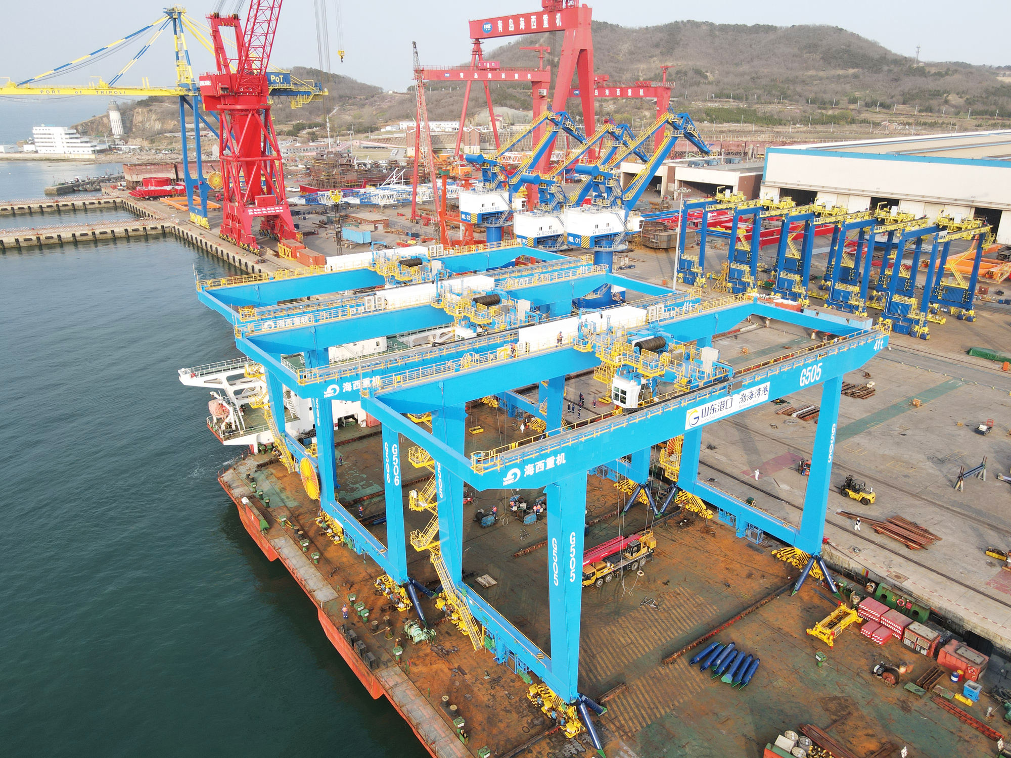 4月14日,中國船舶集團旗下武漢船機海西重機公司為山東港口濰坊港打造的341t-37m自動化軌道吊順利發(fā)運。