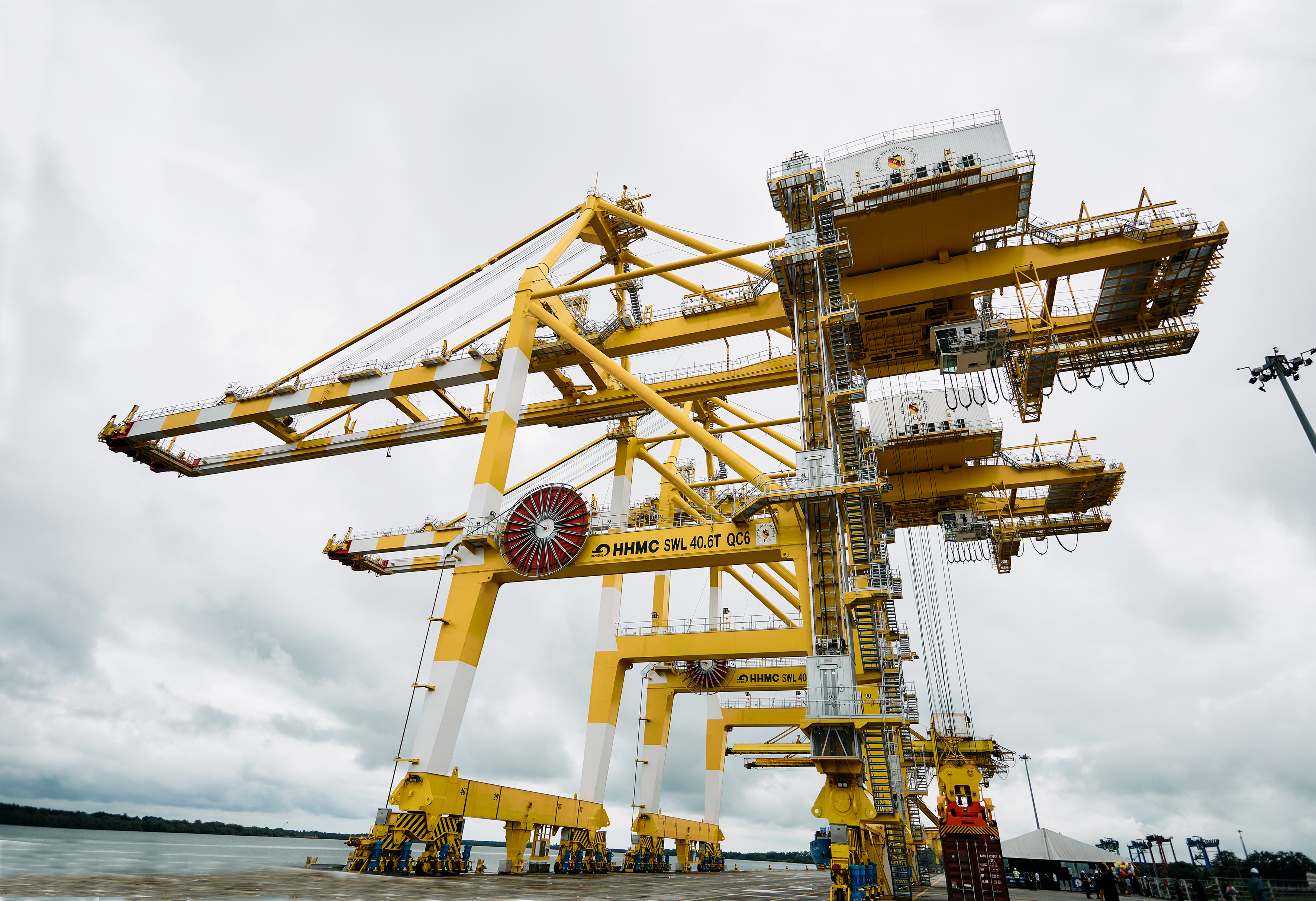 3月5日,中國船舶集團(tuán)旗下武漢船機(jī)海西重機(jī)公司為馬來西亞古晉港建造的2臺岸橋順利完成交機(jī),該項(xiàng)目的交機(jī)儀式受到當(dāng)?shù)卣块T的高度關(guān)注與重視,當(dāng)?shù)刂髁髅襟w進(jìn)行了采訪報道。