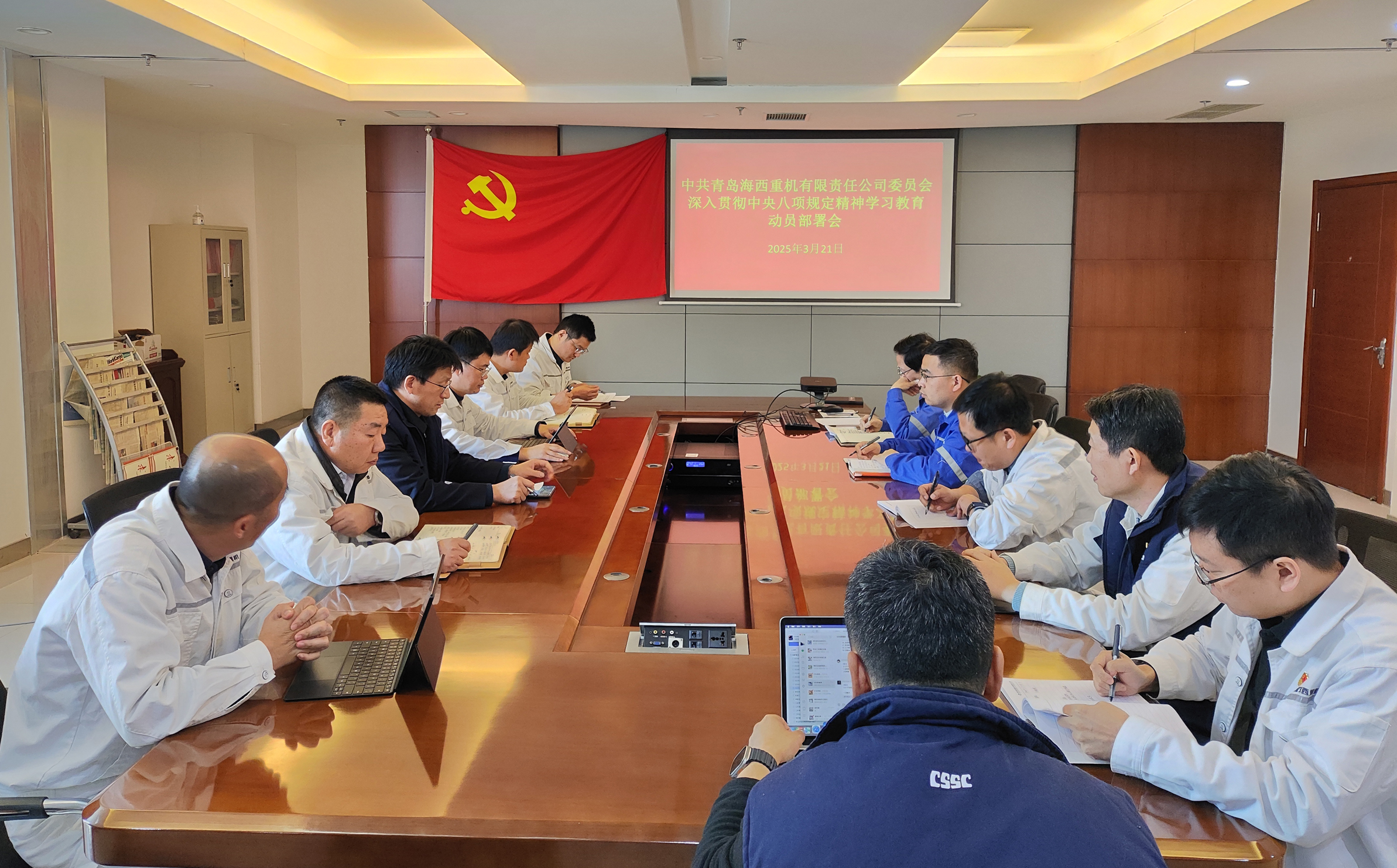 3月21日,海西重機(jī)黨委召開深入貫徹中央八項規(guī)定精神學(xué)習(xí)教育動員部署會,傳達(dá)學(xué)習(xí)上級單位有關(guān)會議精神和要求,研究部署貫徹落實工作。公司黨委委員、各黨支部書記參加會議。