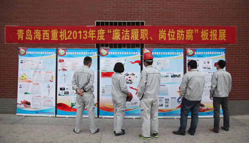以反腐倡廉深入開展為契機,青島海西重機將廉政文化融入企業(yè)核心價值觀建設(shè),堅持“防、救、戒”三術(shù)相結(jié)合,進一步筑牢了拒腐防變的思想防線。營造出了“學廉、倡廉、崇廉、守廉”的良好氛圍,打造了風清氣正的干事創(chuàng)業(yè)環(huán)境,為企業(yè)持續(xù)、健康、穩(wěn)健發(fā)展構(gòu)筑牢固的“鋼鐵長城”,提供紀律保證!