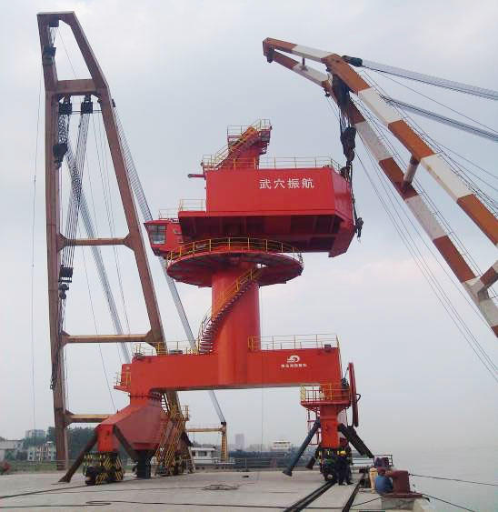 日前,裝載青島海西重機(jī)兩臺門座起重機(jī)的船舶靠泊武穴振航件雜貨碼頭,經(jīng)過現(xiàn)場工作人員的共同努力,兩臺門機(jī)順利吊裝完成,屹立于武穴振航碼頭上,成為長江邊上一道亮麗的風(fēng)景線。