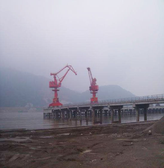 武穴港區(qū)件雜貨碼頭工程是武穴市“十一五”重點港航建設(shè)項目,是2009年度黃岡市交通“十件大事”和湖北省水運建設(shè)“十大項目”之一,也是目前長江北岸下至安慶上至陽邏區(qū)間最大的件雜貨碼頭,青島海西重機(jī)兩臺門機(jī)的成功落軌標(biāo)志著該項目已取得了初步成功。