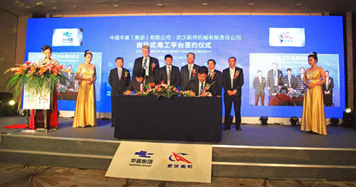 2014年7月2日,武漢船用機械有限責(zé)任公司與東方華晨集團,在青島海西灣青島海西重機舉行了10臺自升式海工平臺項目的合同簽字儀式。武漢船機董事長何紀武、東方華晨集團主席程立新先生等出席了簽字儀式。